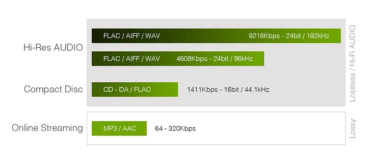 Both AAC and Ogg Vorbis are lossy formats. This means they both throw away data in favour of using a lower bandwidth for streaming. Services like Deezer Hifi and Tidal, in comparison, stream in CD quality, which could vary anywhere between 700kbps to 1411kbps. To put it simply, at its highest bitrate, Spotify could be throwing away as much as 78% of the data of a “proper” CD quality recording. (There are supposedly better, High Res recordings that use sample rates up to 192kHz and bit depths up to 24bit. But, for simplicity’s sake, let’s focus on CD quality — that is, 1411 kbps at 16bit/44.1kHz — as a baseline). Apple Music could be throwing away 82%.