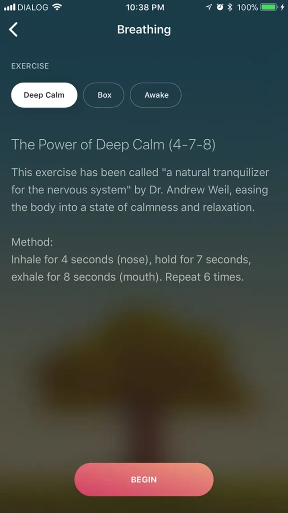 Perhaps what I like most is the fact that the app plays a sound track in the background while you meditate. There’s a variety of tracks to choose from. I’ve found the breathing exercises quite useful, too.